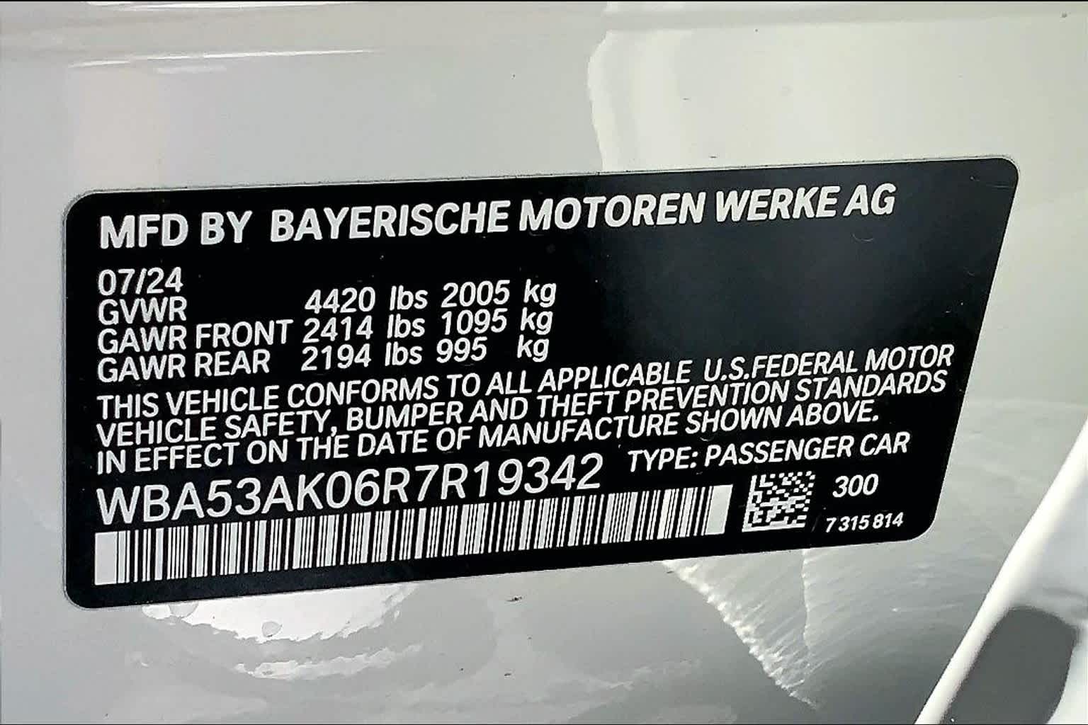 - VIN : WBA53AK06R7R19342