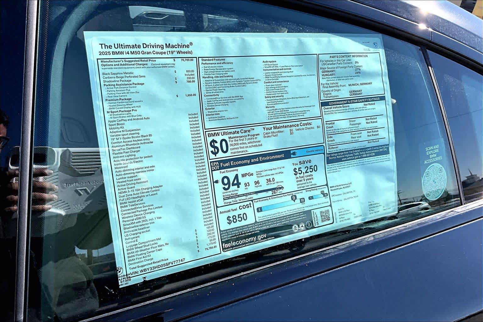 - VIN : WBY33HD05SFV77747