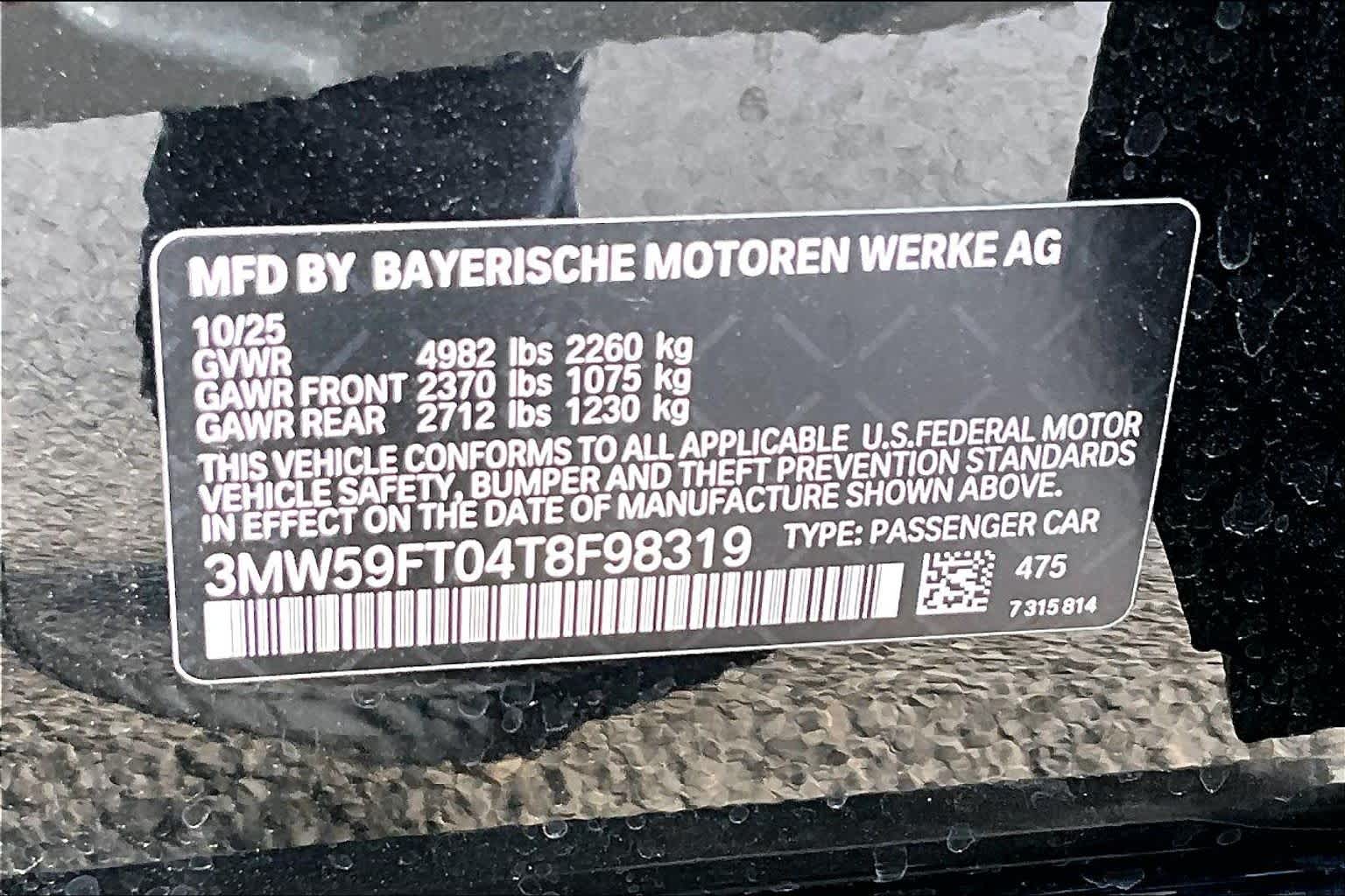 - VIN : 3MW59FT04T8F98319