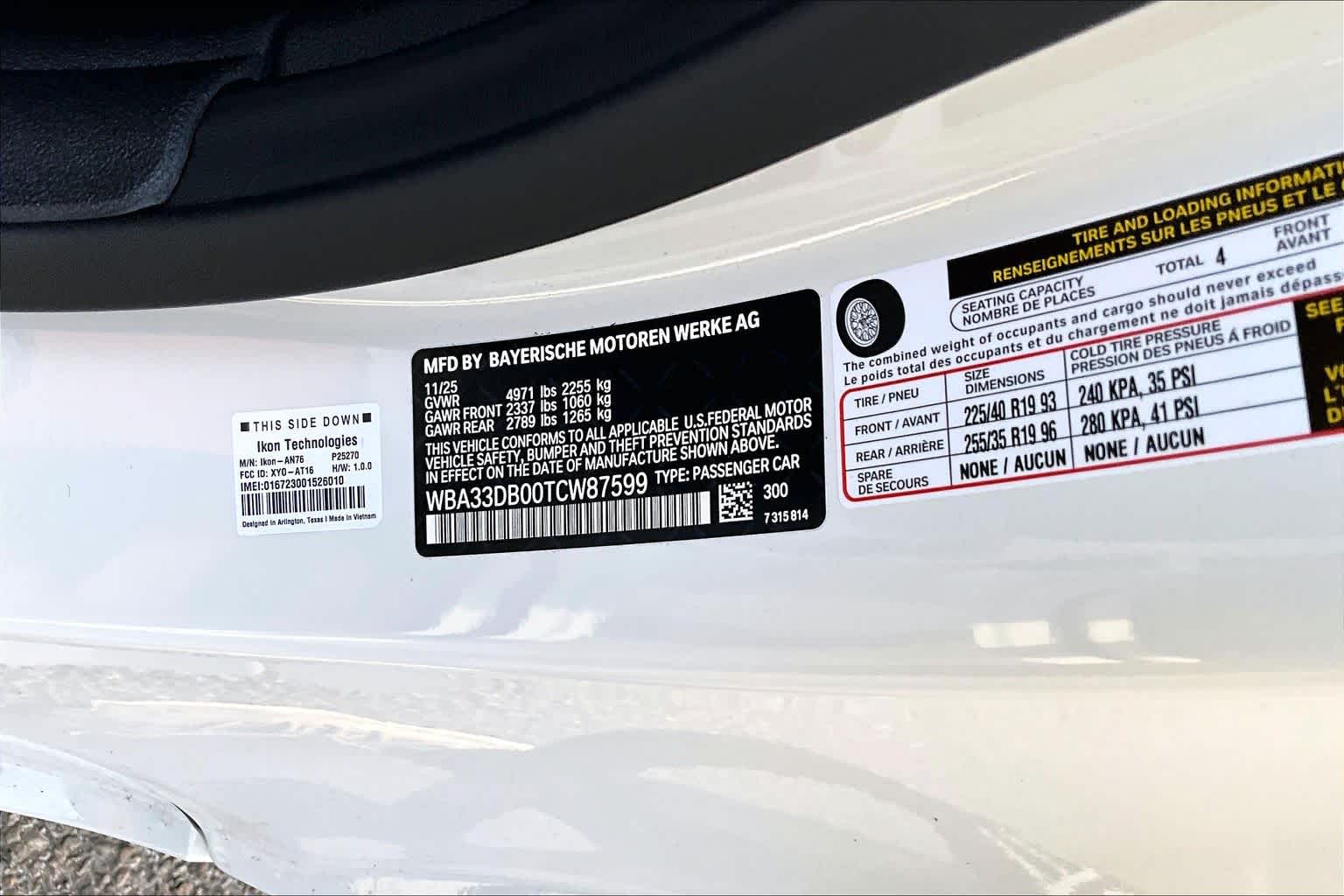 - VIN : WBA33DB00TCW87599