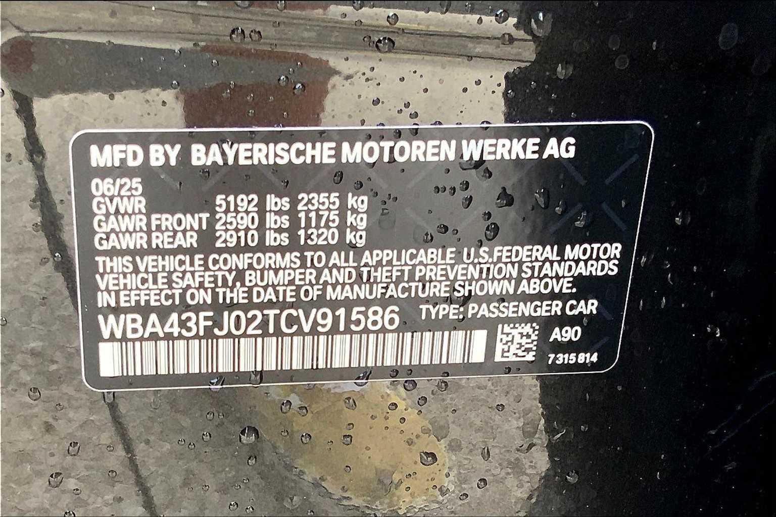 - VIN : WBA43FJ02TCV91586