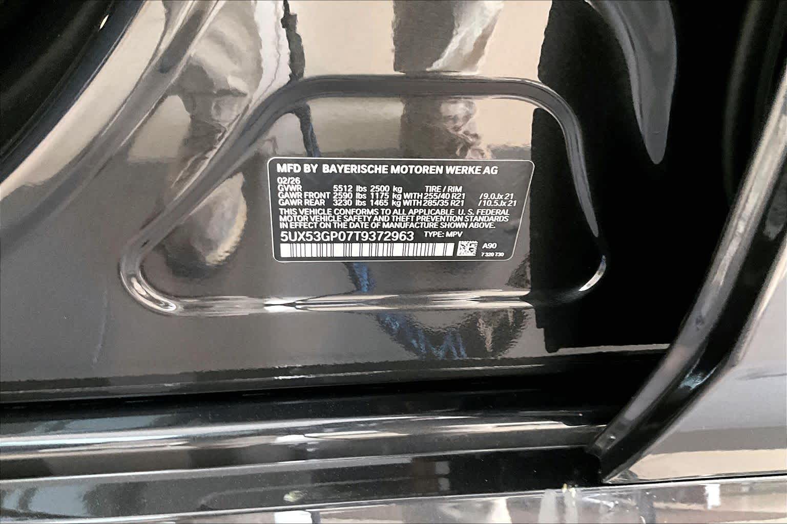 - VIN : 5UX53GP07T9372963