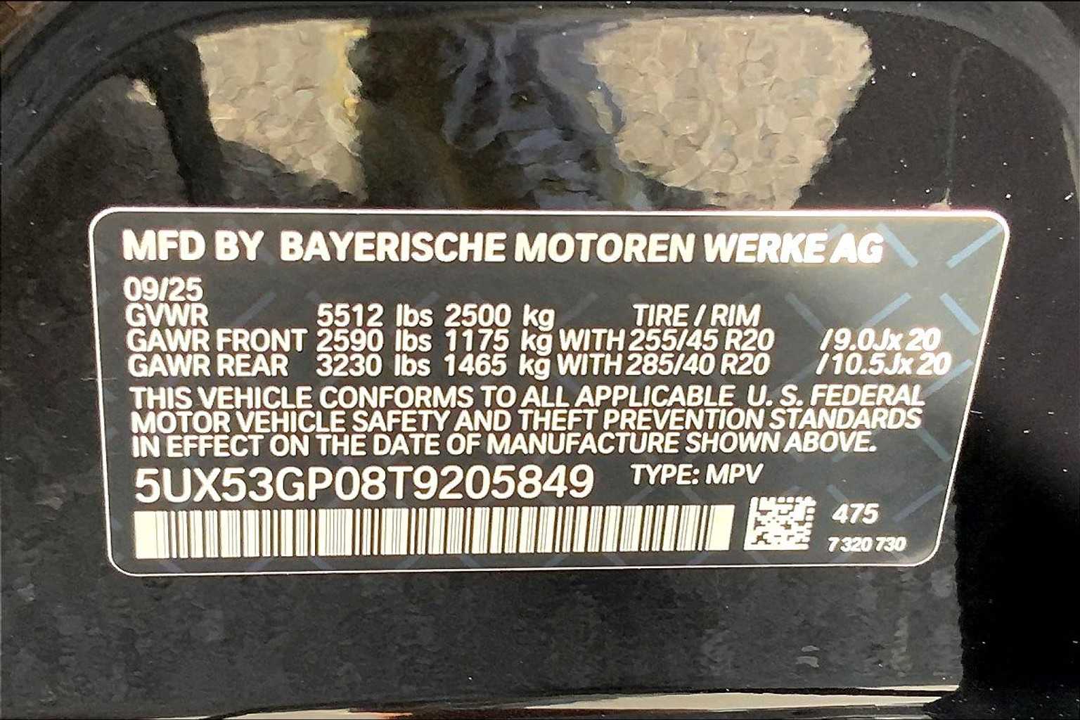 - VIN : 5UX53GP08T9205849