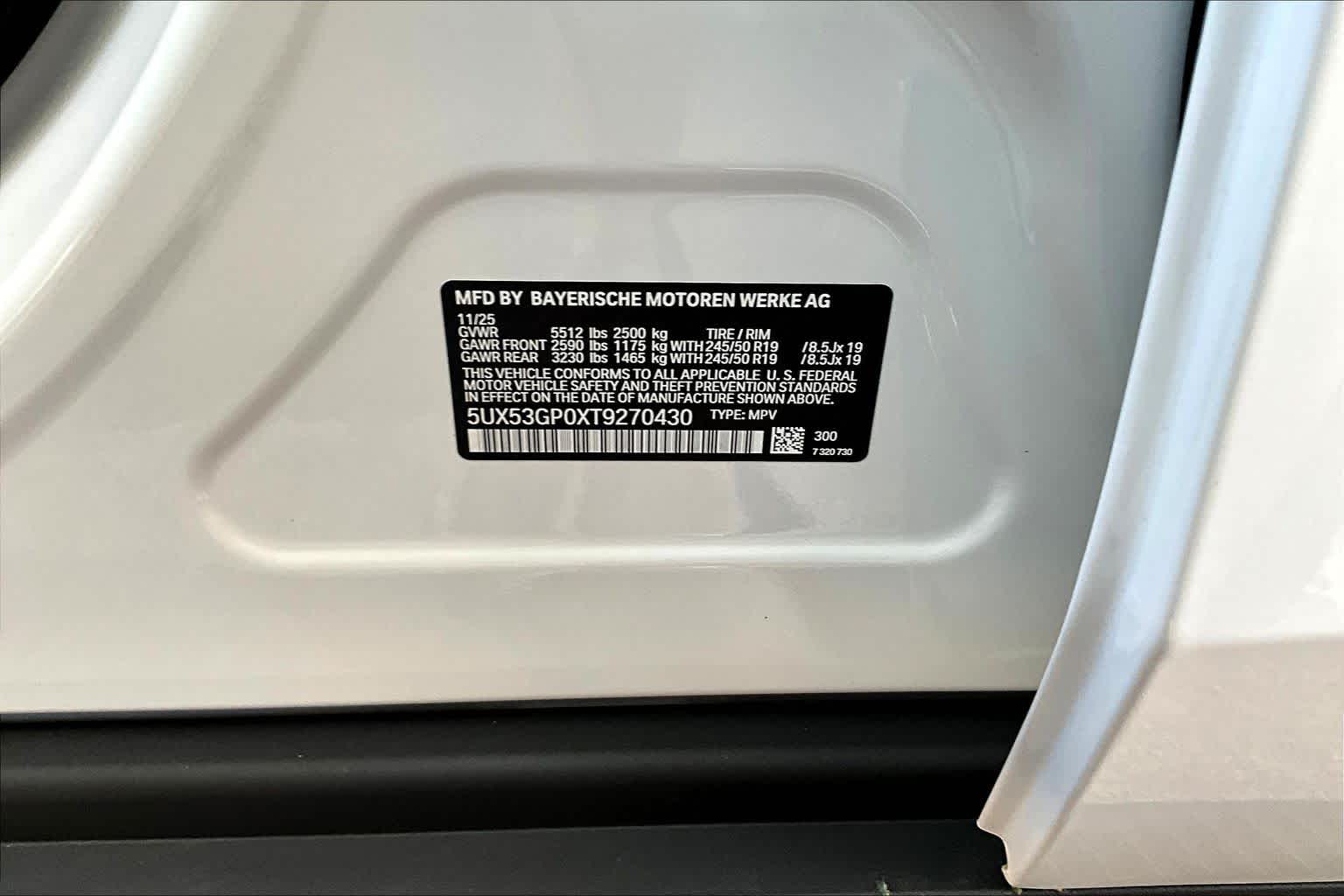 - VIN : 5UX53GP0XT9270430