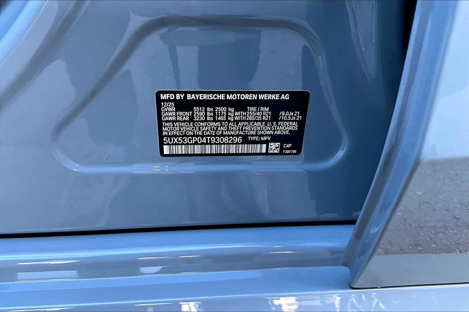- VIN : 5UX53GP04T9308296