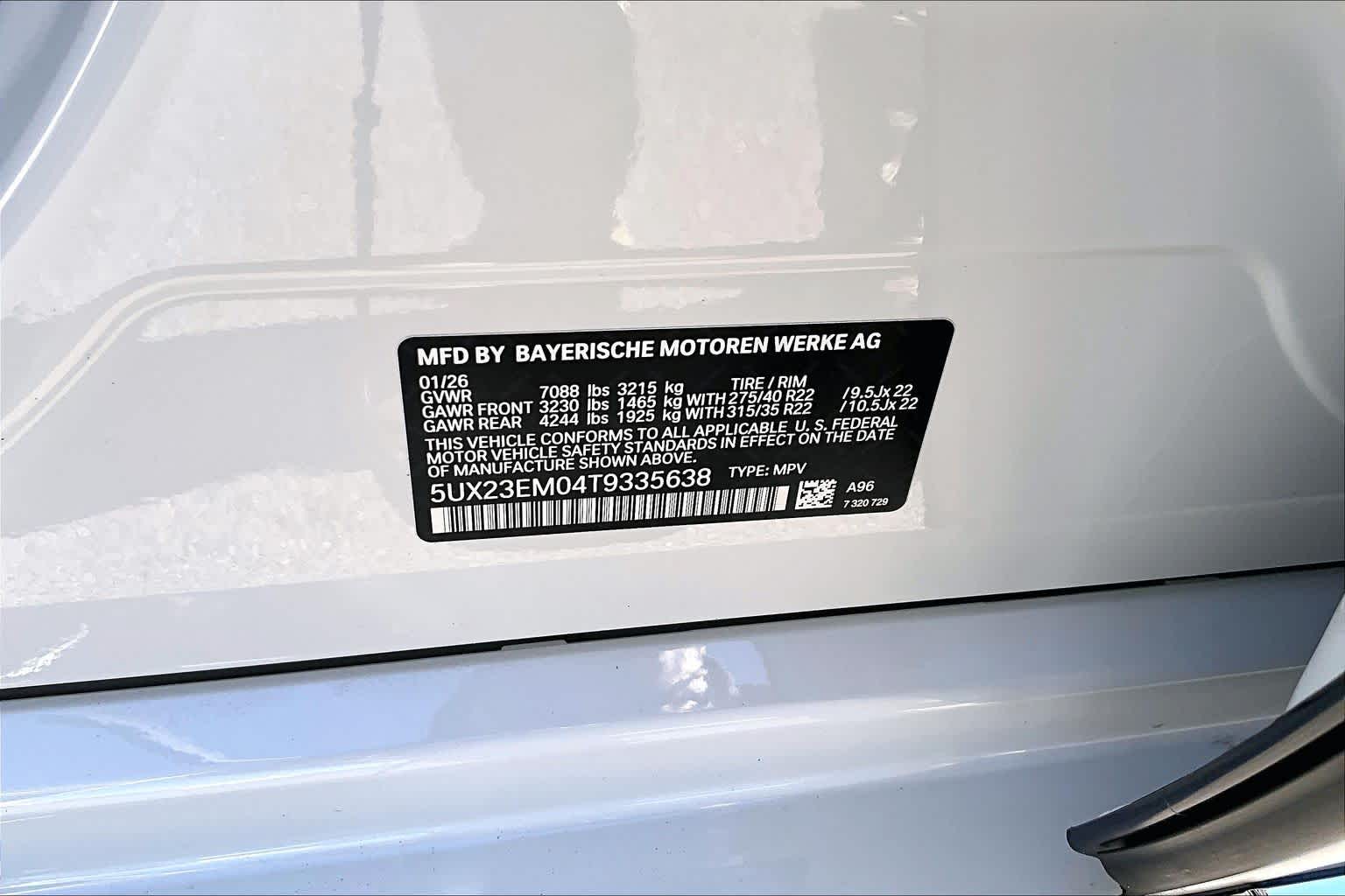 - VIN : 5UX23EM04T9335638