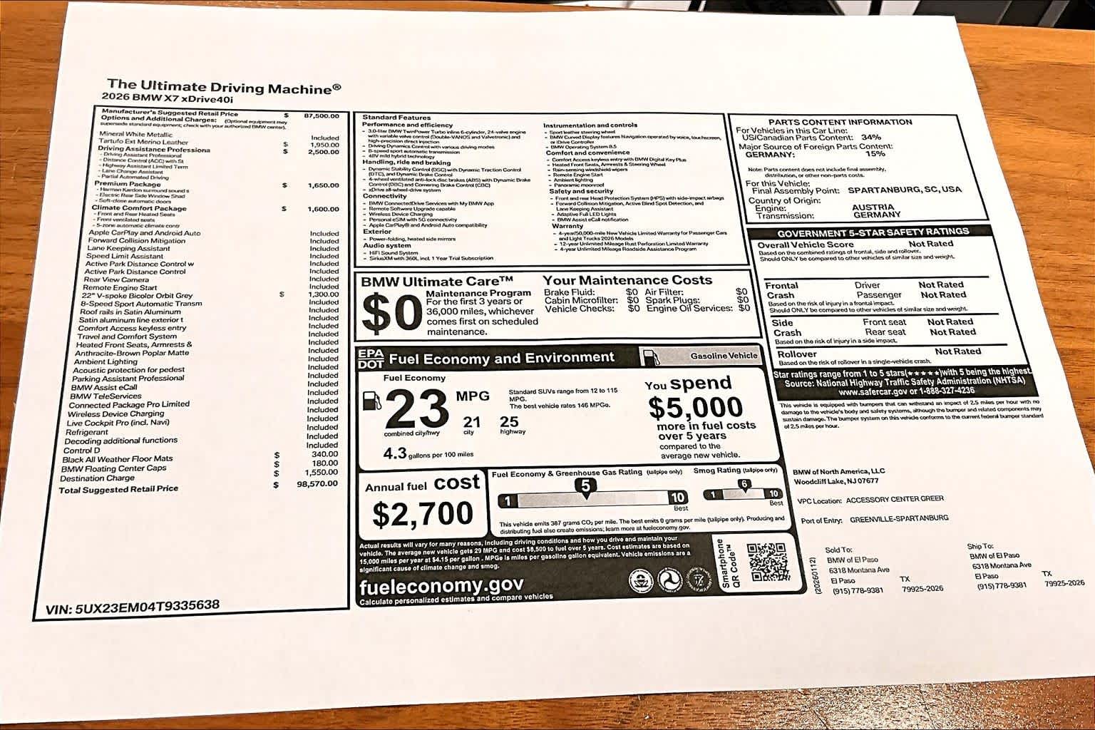 2026 BMW X7 xDrive40i at BMW MINI of El Paso