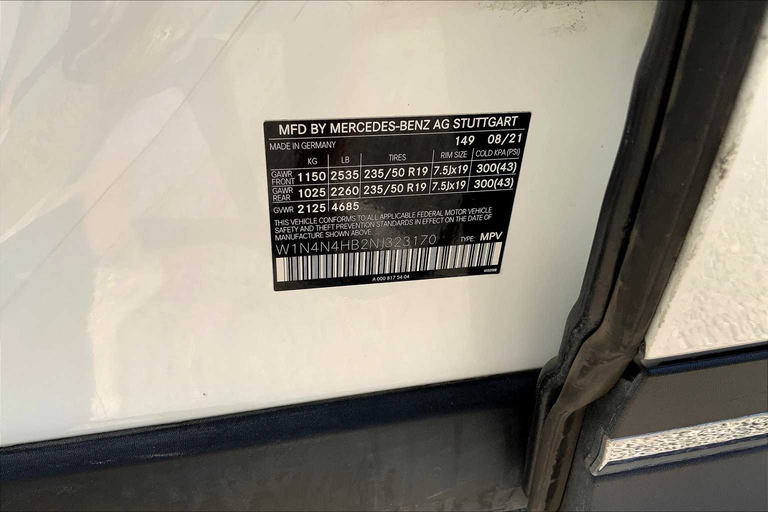 - VIN : W1N4N4HB2NJ323170