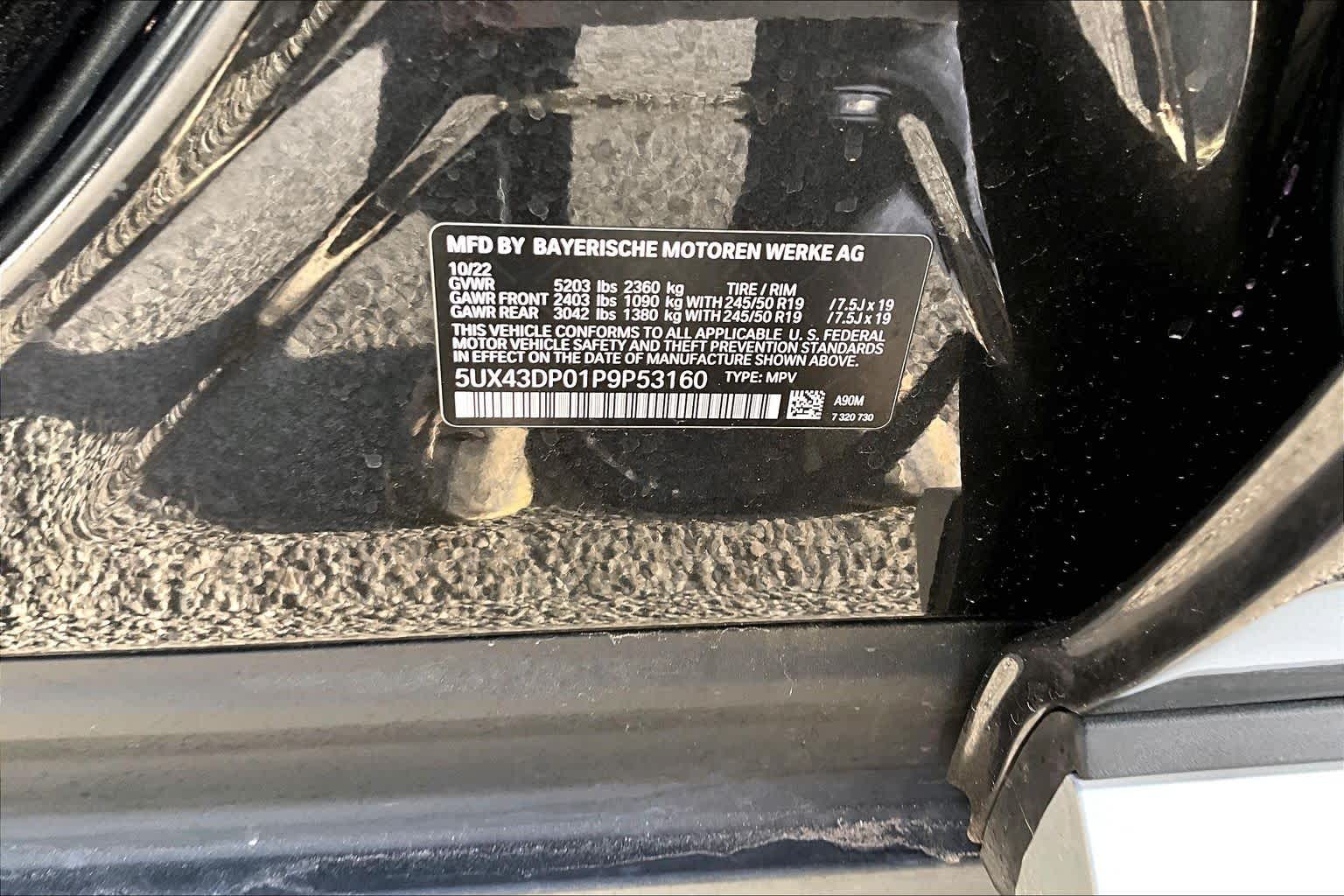 - VIN : 5UX43DP01P9P53160