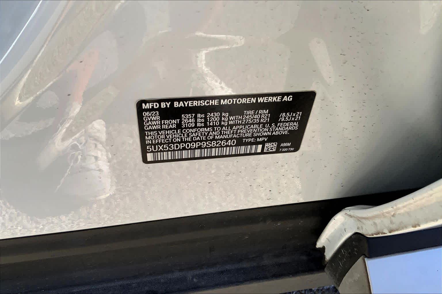 - VIN : 5UX53DP09P9S82640