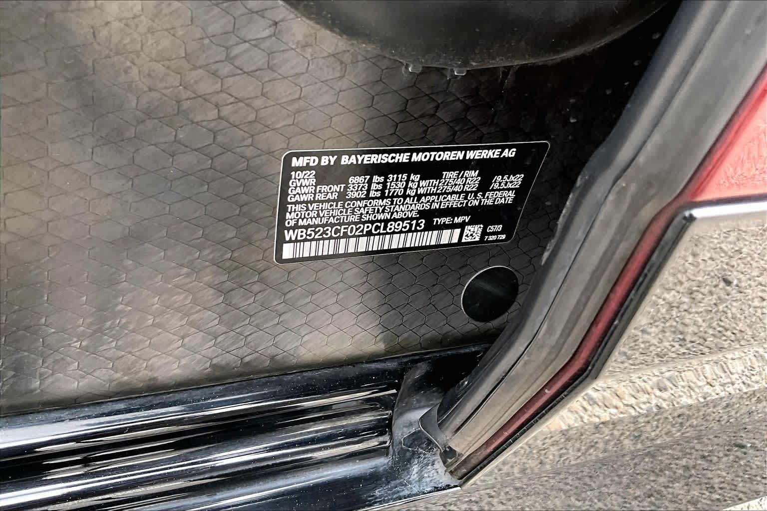 - VIN : WB523CF02PCL89513
