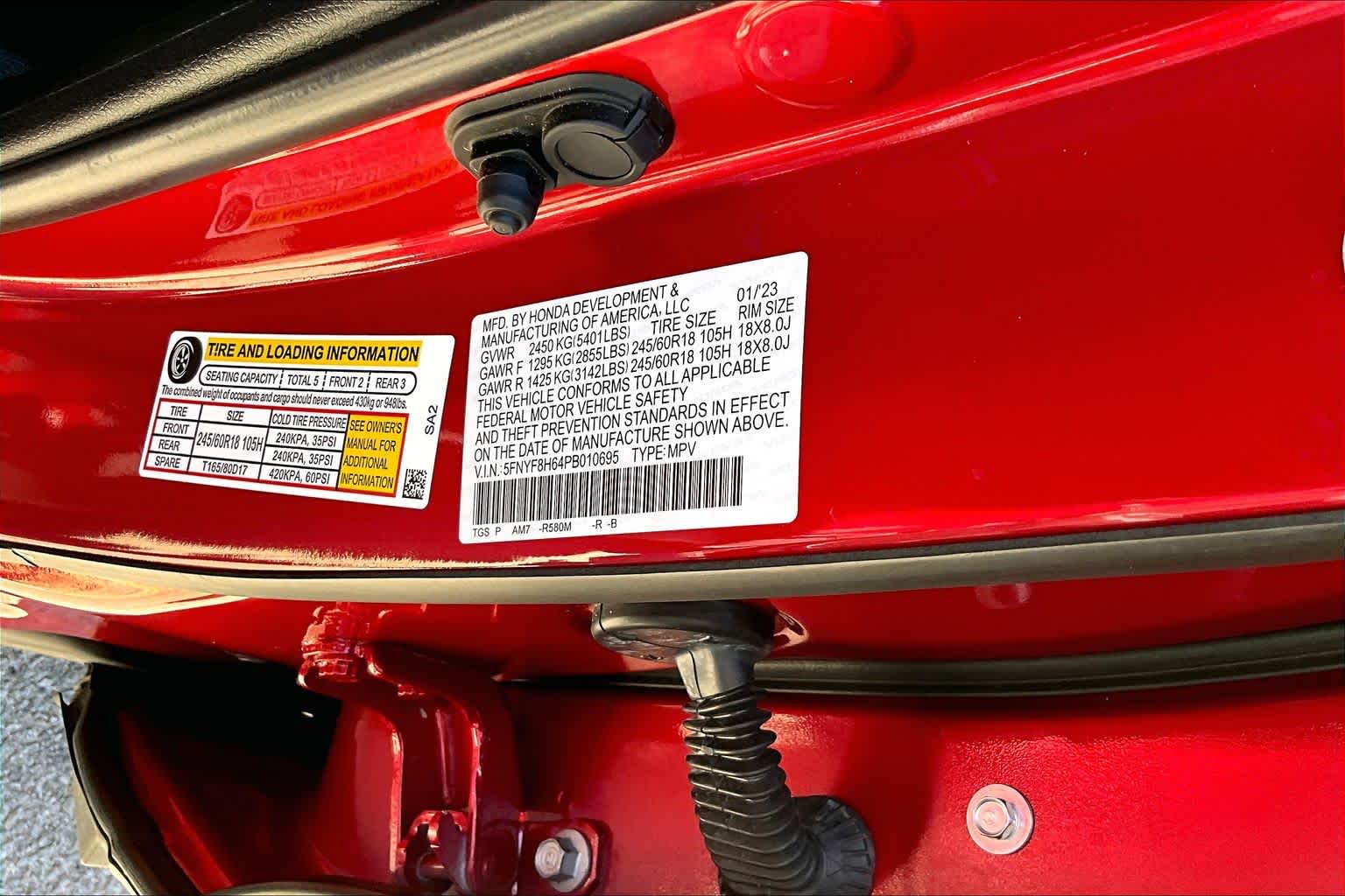 - VIN : 5FNYF8H64PB010695