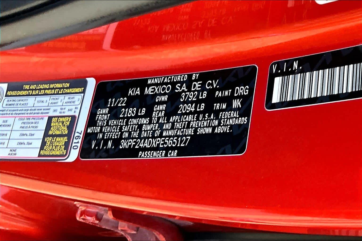 - VIN : 3KPF24ADXPE565127