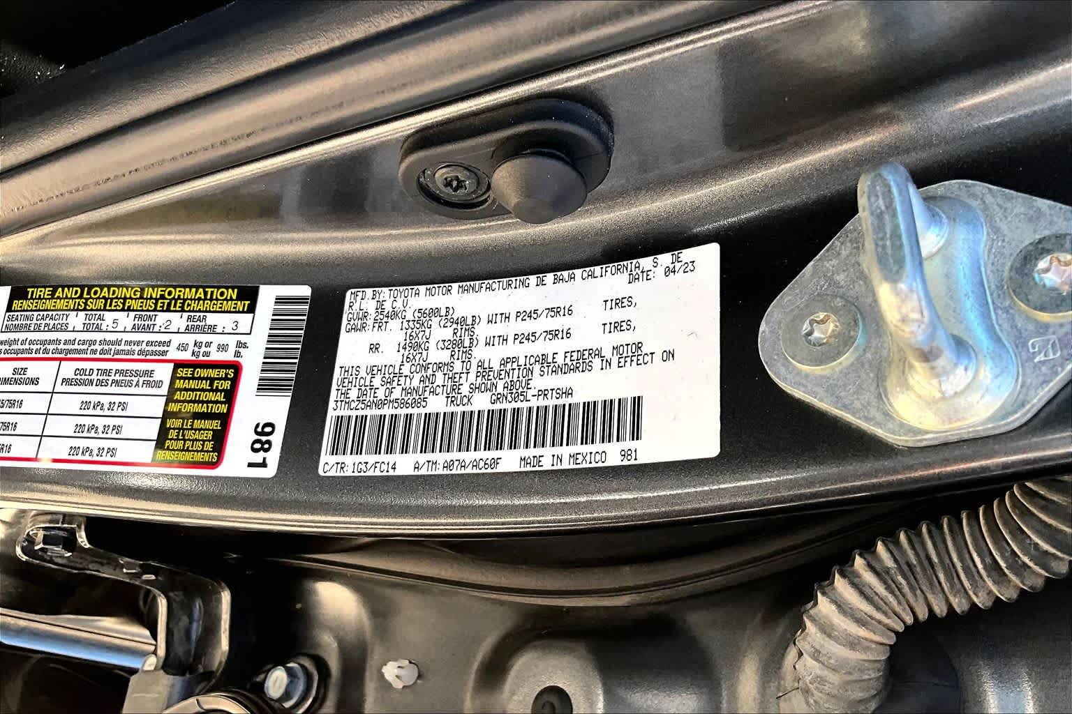 - VIN : 3TMCZ5AN0PM586085