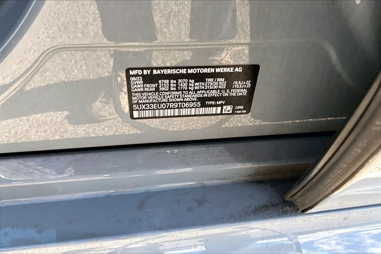 - VIN : 5UX33EU07R9T06955