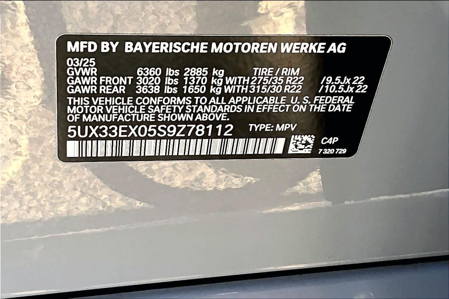 - VIN : 5UX33EX05S9Z78112