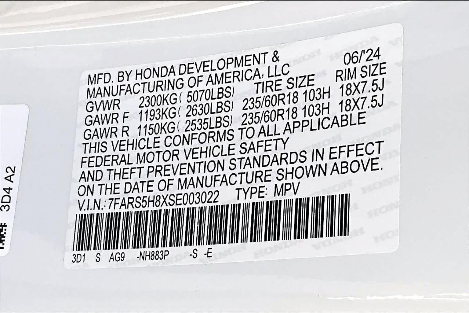 - VIN : 7FARS5H8XSE003022